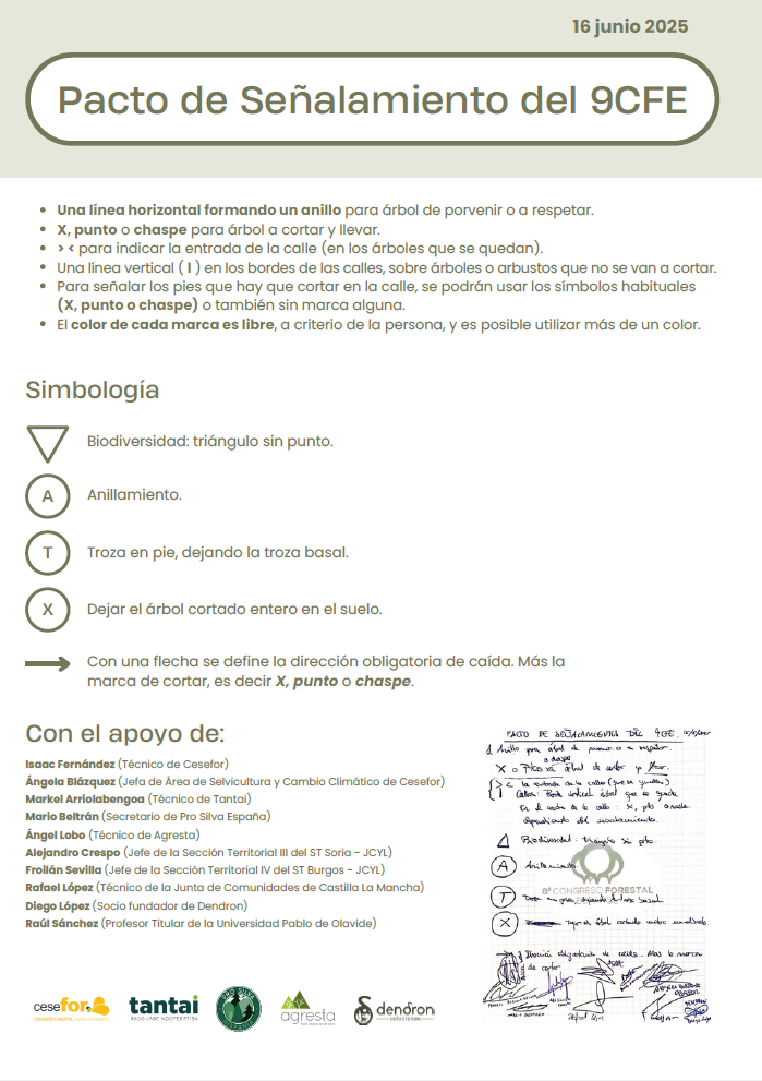 Durante el 9º Congreso Forestal Español en Gijón se debatió y acordó promover un código común para realizar las marcas durante el señalamiento de actuaciones selvícolas. El objetivo es ofrecer una base unificada para la simbología a las personas que realizan el señalamiento, que por supuesto acabarán realizando acorde a sus contextos particulares.